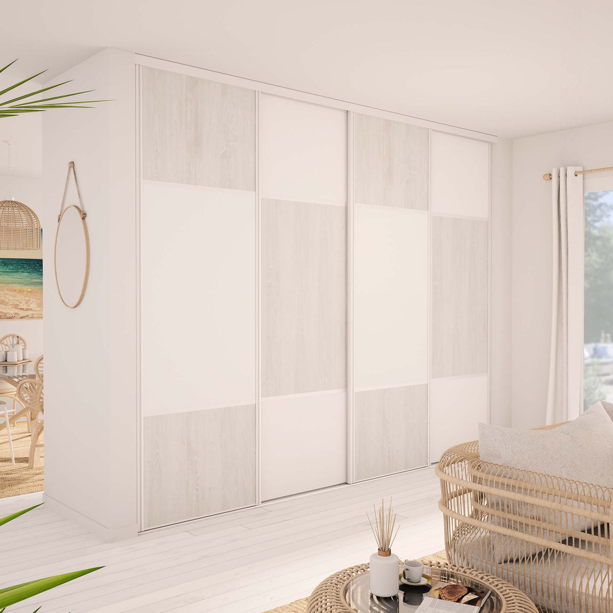 Composition porte 4 : Mélaminé Blanc Mat - Mélaminé Pin Blanc Vieilli - Mélaminé Blanc Mat