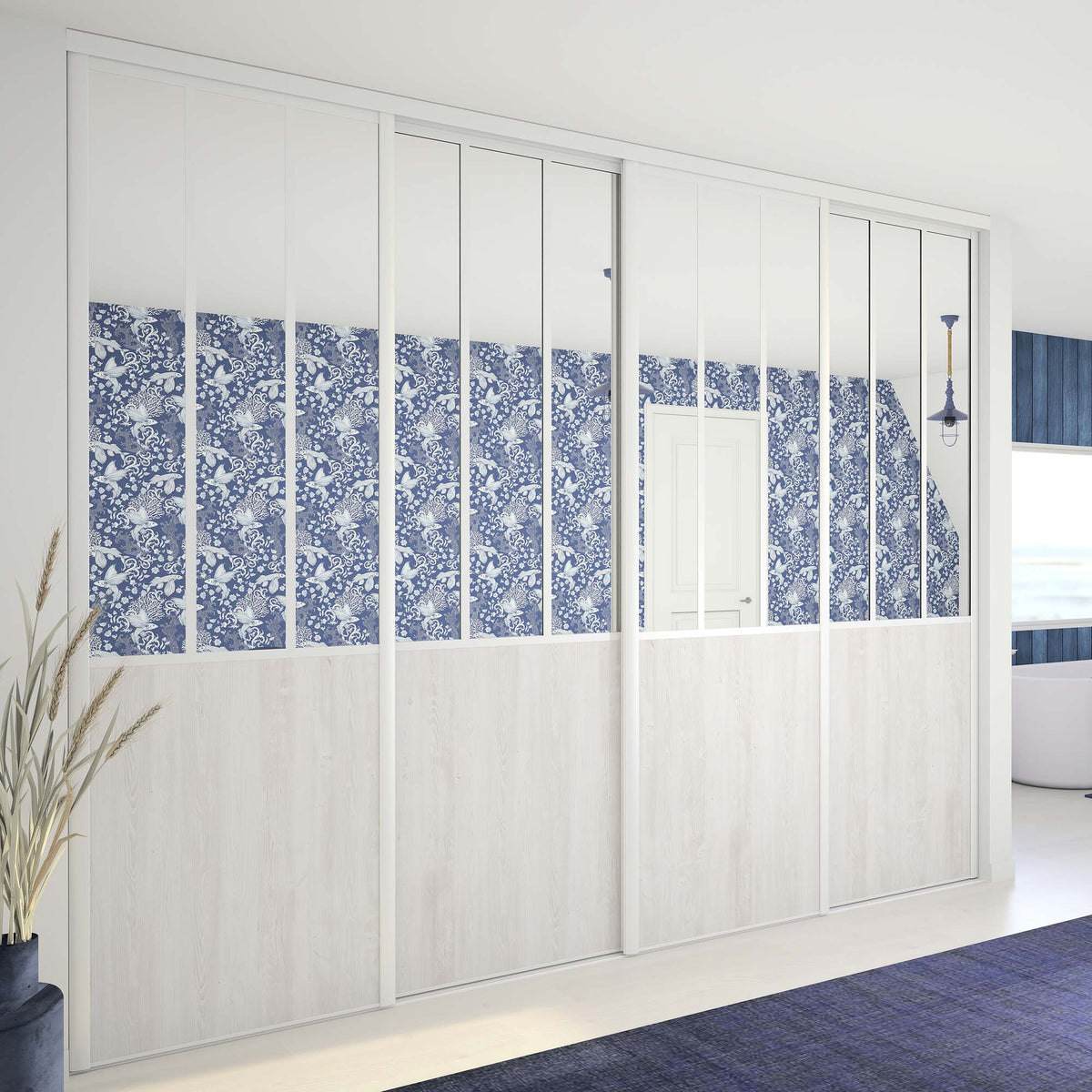 Ces 4 portes coulissantes Atelier sont très tendances et seront idéales pour les espaces de rangement supérieurs à 4 mètres de large.