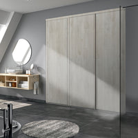 Simple et moderne, la façade de placard Saint-Raphaël trouvera sa place dans n’importe quel intérieur. Sa structure en acier est assortie à ses portes coulissantes effet bois flotté crème pour un ensemble parfaitement harmonieux.