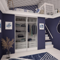 Ces portes de placard coulissantes, hyper tendance, sont très appréciées pour leur contraste. La transparence de la Vitre claire apporte de la légèreté tandis que la frise basse en Zebrano blanc donne du caractère à l’ensemble. Les finitions en alu. Blanc mat soulignent l’ensemble avec élégance. Cette façade transportera votre intérieur dans une ambiance luxueuse et apaisante.