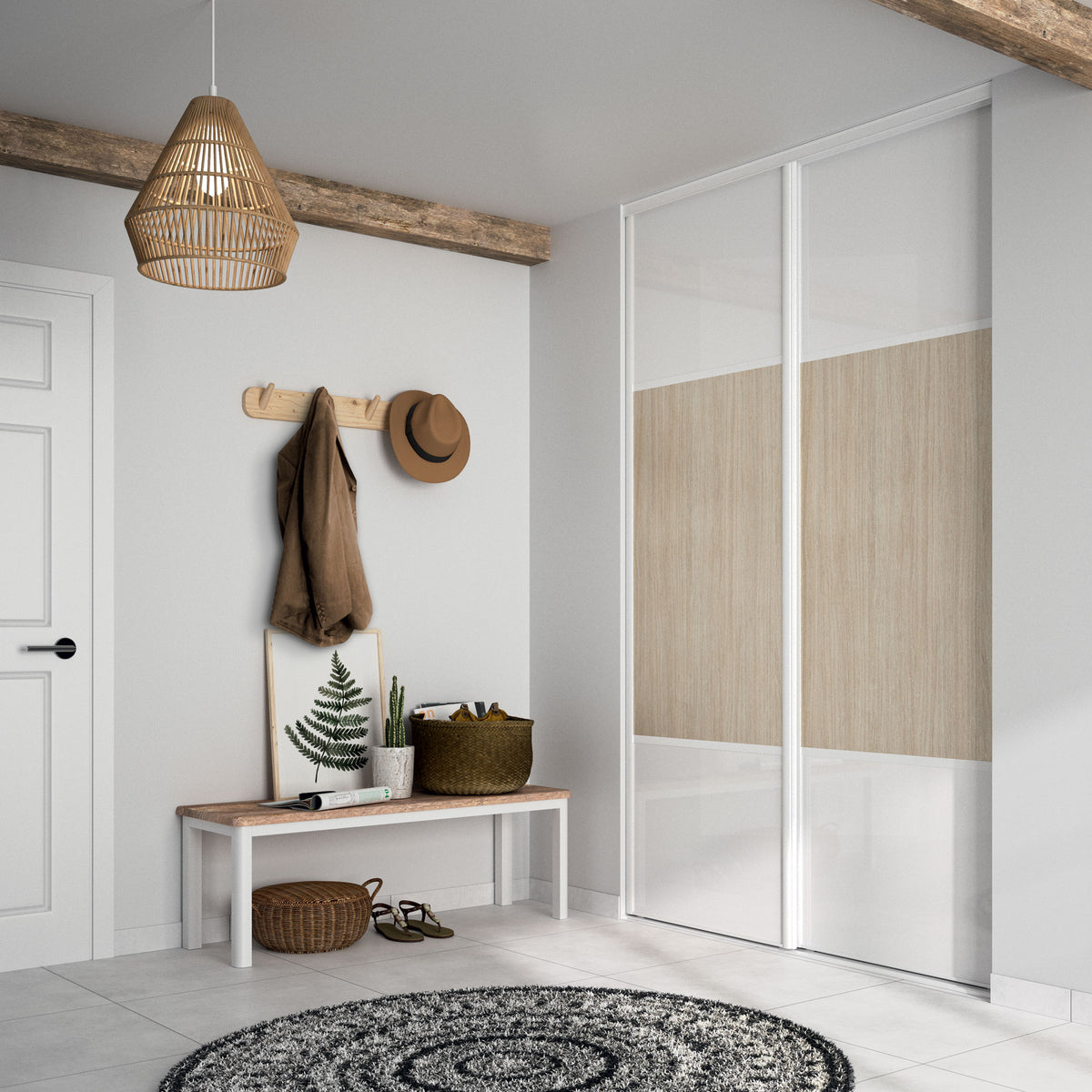 N'hésitez plus entre la chaleur du bois ou la modernité du blanc, mixez-les ! Cette alliance entre l'effet bois patiné rose et le verre laqué blanc pur offre un rendu parfait. Les finitions en acier laqué blanc subliment l'ensemble dans une composition en ligne classique et élégante.
