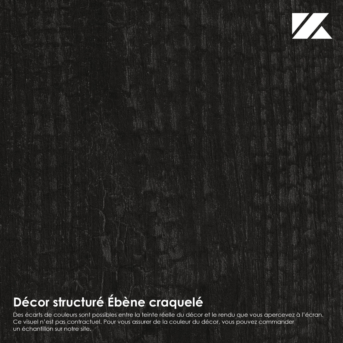 Succombez pour ces portes Kazed ! La chaleureuse frise horizontale en Ébène craquelé contraste avec la modernité du verre laqué Blanc pur. Sa finition Blanc mat et ses traverses fines soulignent en toute discrétion cette composition si chic et moderne