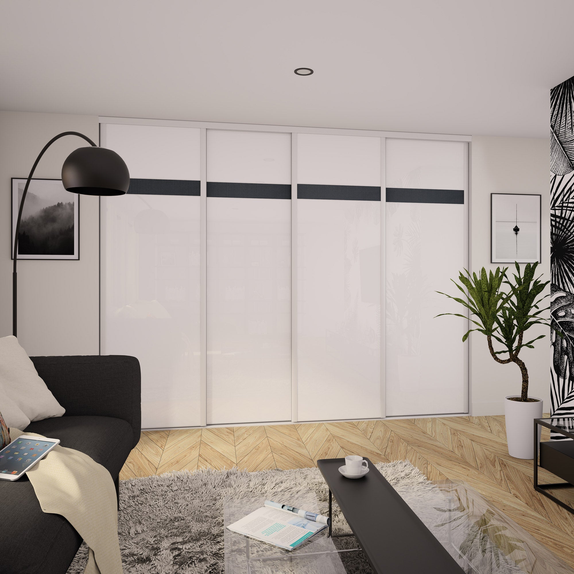 Cette façade de 4 portes de placard coulissantes est idéale pour les espaces de rangement supérieurs à 4 mètres de large.
