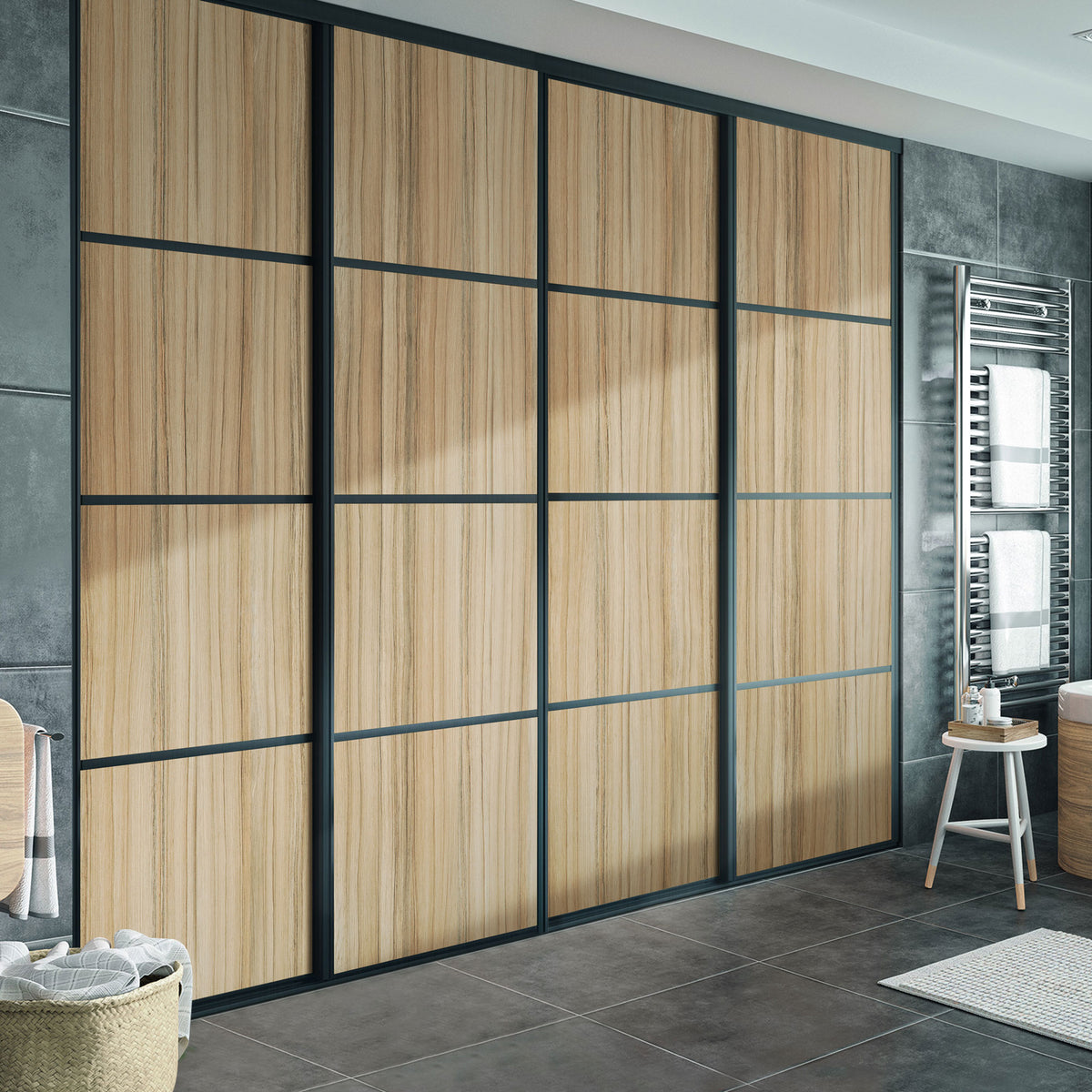 Vous n'allez plus vouloir quitter votre salle de bain ! Direction l'Amazonie avec ces portes de placard coulissantes au décor Panama. Les finitions en aluminium noir mat et les fines traverses assorties offrent un rendu final haut de gamme. Prêt pour le voyage ?