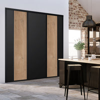 Cette collection élégante et tendance associe l'authenticité d'un effet Chêne blond à la profondeur d'un noir intense. Les profils en aluminium assorties donnent un ton chic et boisé à ces portes de placard coulissantes.