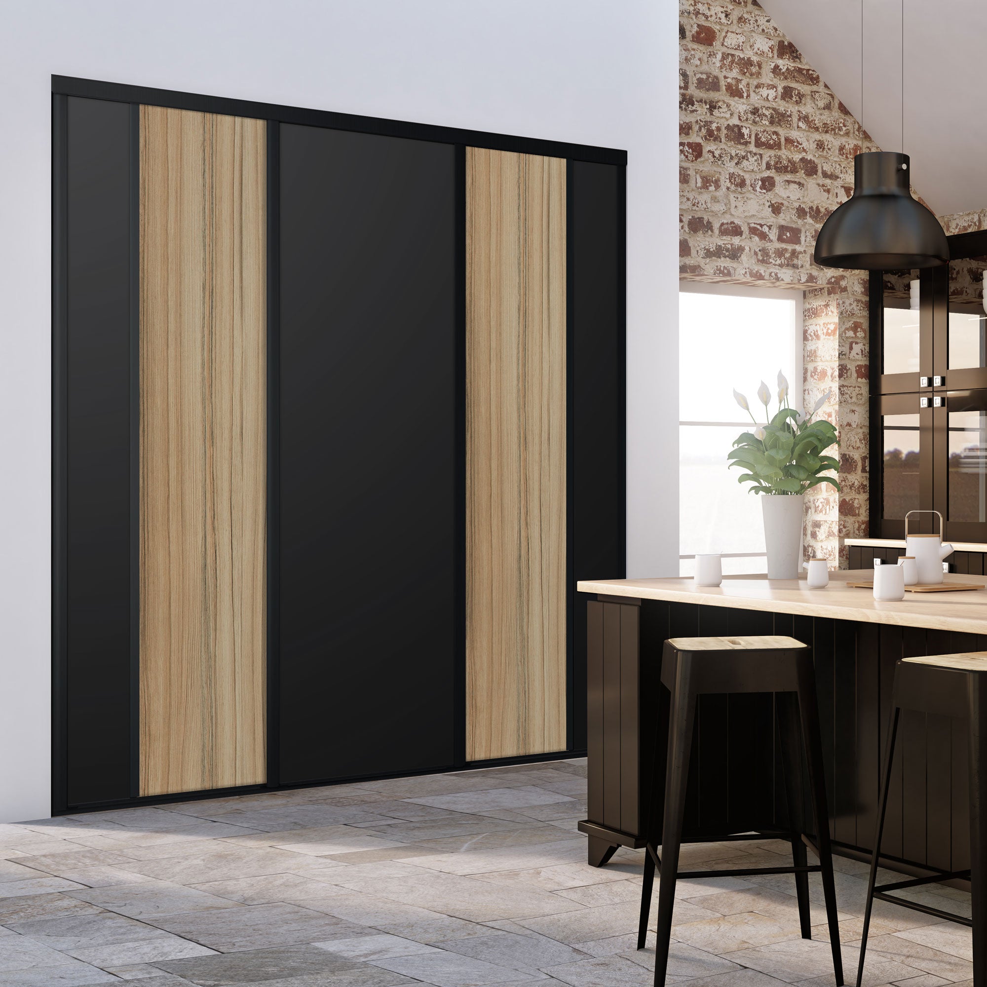 Cette collection élégante et tendance associe l'authenticité d'un effet Panama à la profondeur d'un noir intense. Les profils en aluminium assorties donnent un ton chic et boisé à ces portes de placard coulissantes.
