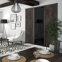 Osez l'originalité, jouez sur les contrastes ! Cette façade de placard est composée de deux portes effet bois fumé brut et d'une en verre laqué noir. Une finition en acier coordonnée au décor complète cet ensemble élégant et saisissant !