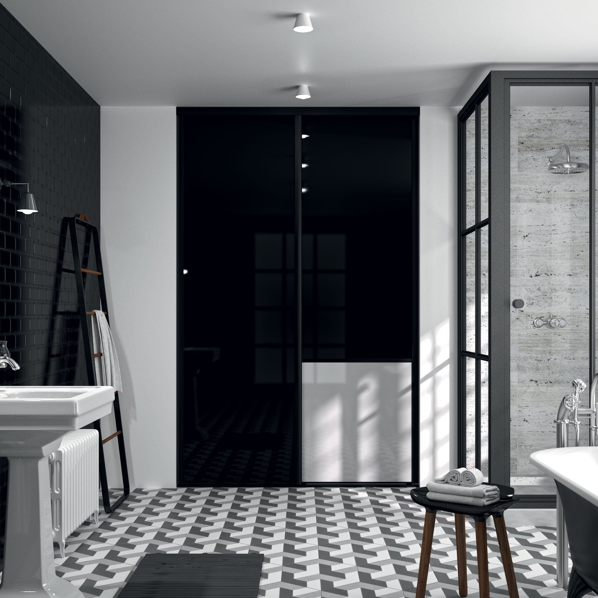 La noir est LA couleur intemporelle et tendance. Pour un effet moderne, associez le noir à une touche de gris perle. L'habillage en aluminium noir mat qui entoure ces portes de placard en verre laqué donne un look ultra moderne.