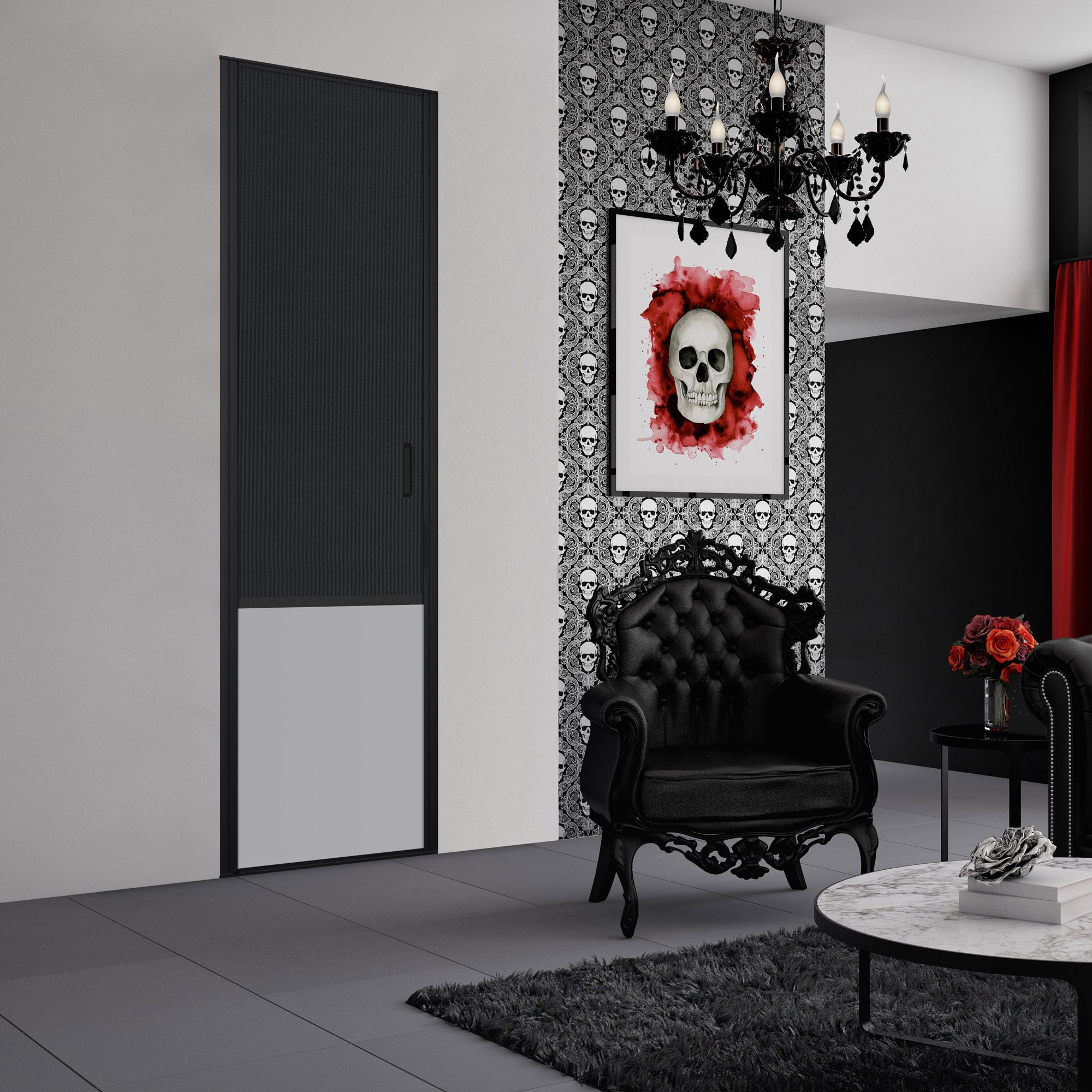 Vous tomberez sous le charme de cette façade de placard ! Son gris galet ajoute une touche de subtilité à votre salon et fait ressortir l'effet cuir carbone. La structure en aluminium met joliment en valeur l'ensemble.