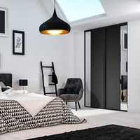 En choisissant d'associer des miroirs latéraux au noir intense de ces portes dont la structure est en aluminium, vous faites un choix sûr ! Cette façade de placard donnera un côté élégant et chic à votre chambre.