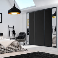 En choisissant d'associer des miroirs latéraux au noir intense de ces portes dont la structure est en aluminium, vous faites un choix sûr ! Cette façade de placard donnera un côté élégant et chic à votre chambre.
