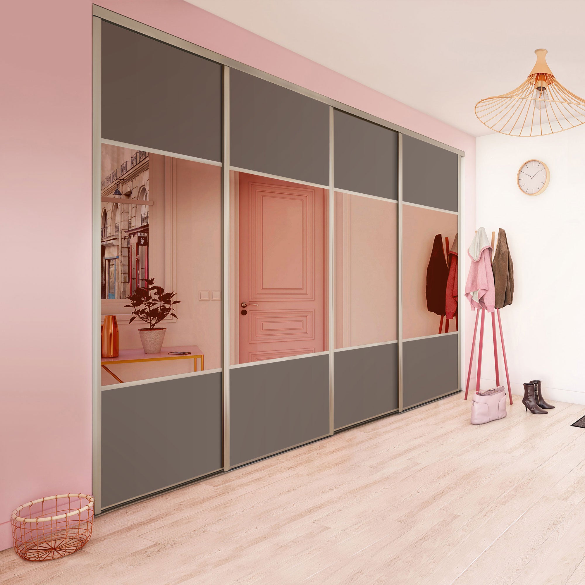 Cette façade de 4 portes de placard coulissantes est idéale pour les espaces de rangement supérieurs à 4 mètres de large.
