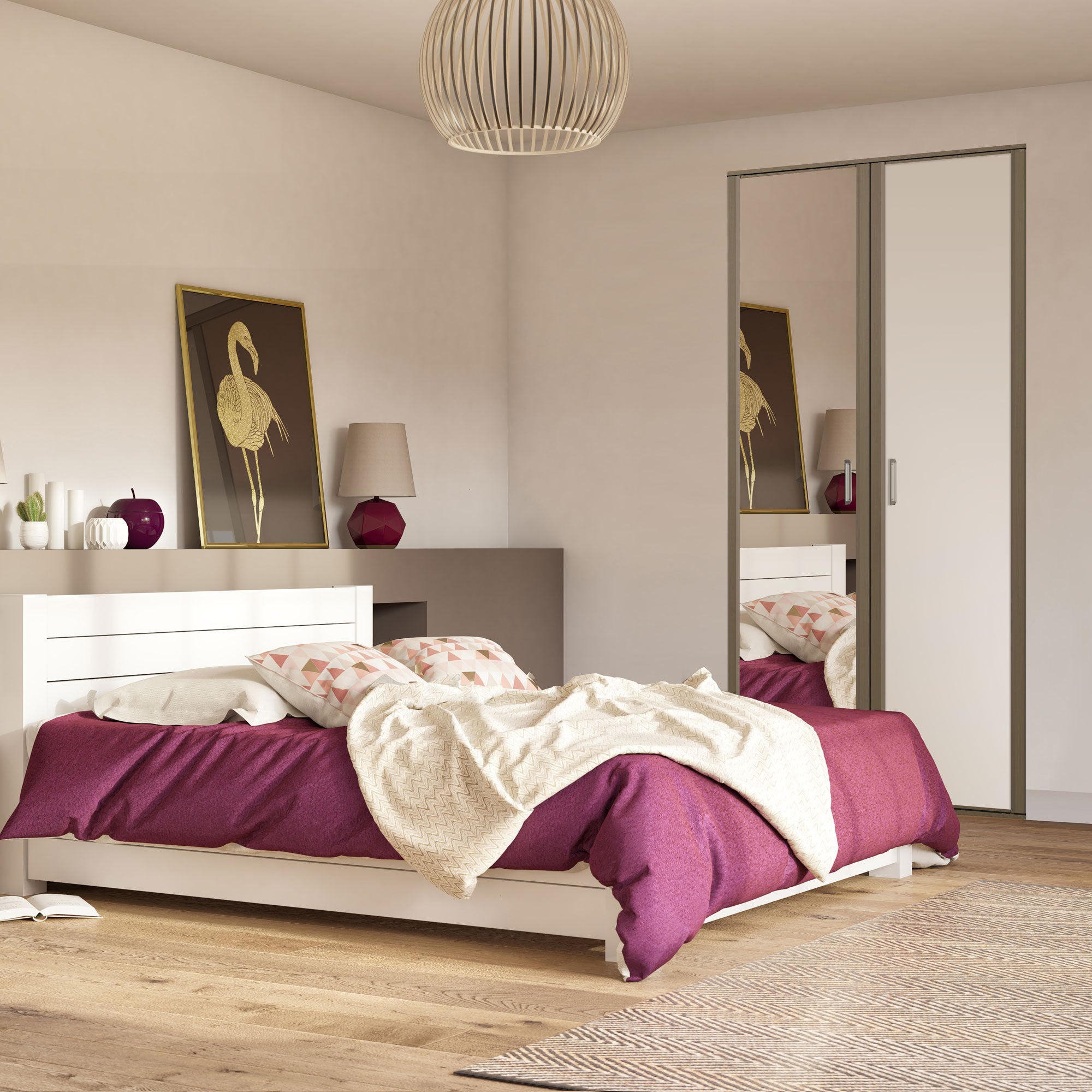 Idée tendance : mixez un miroir bronze à un lumineux ton blanc mat pour réchauffer l'atmosphère de votre pièce. L'aluminium inox brossé présent sur la structure et les finitions ajoutent une touche de chic à cette façade de placard.