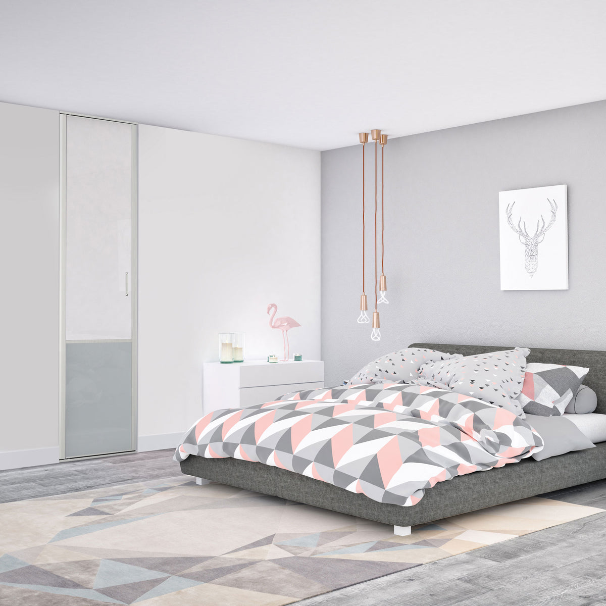 Comme à la fête foraine, vous allez vouloir croquer cette porte de placard pivotante très gourmande ! Ses deux nuances de verre laqué enchanteront les petits et grands enfants : blanc pur et gris perle. L'aluminium naturel qui entoure l'ensemble parfait cette façade.