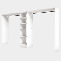 Ce dressing PRIMO autoportant est en mélaminé Blanc Mat. Ses deux espaces de penderies longues et son caisson de 4 étagères en font un rangement idéal pour les grands espaces.