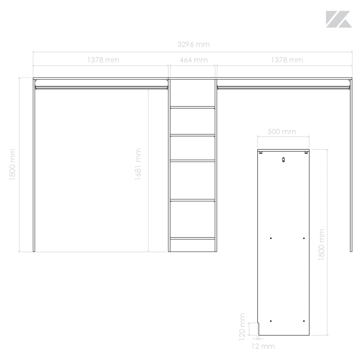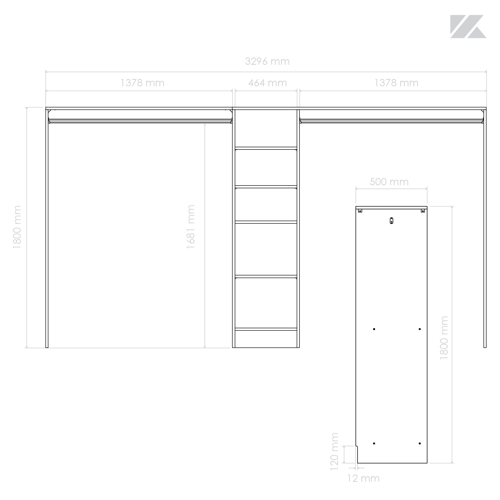 Dim. : H1800 mm x L3296 mm x P500 mm (planches recoupables)