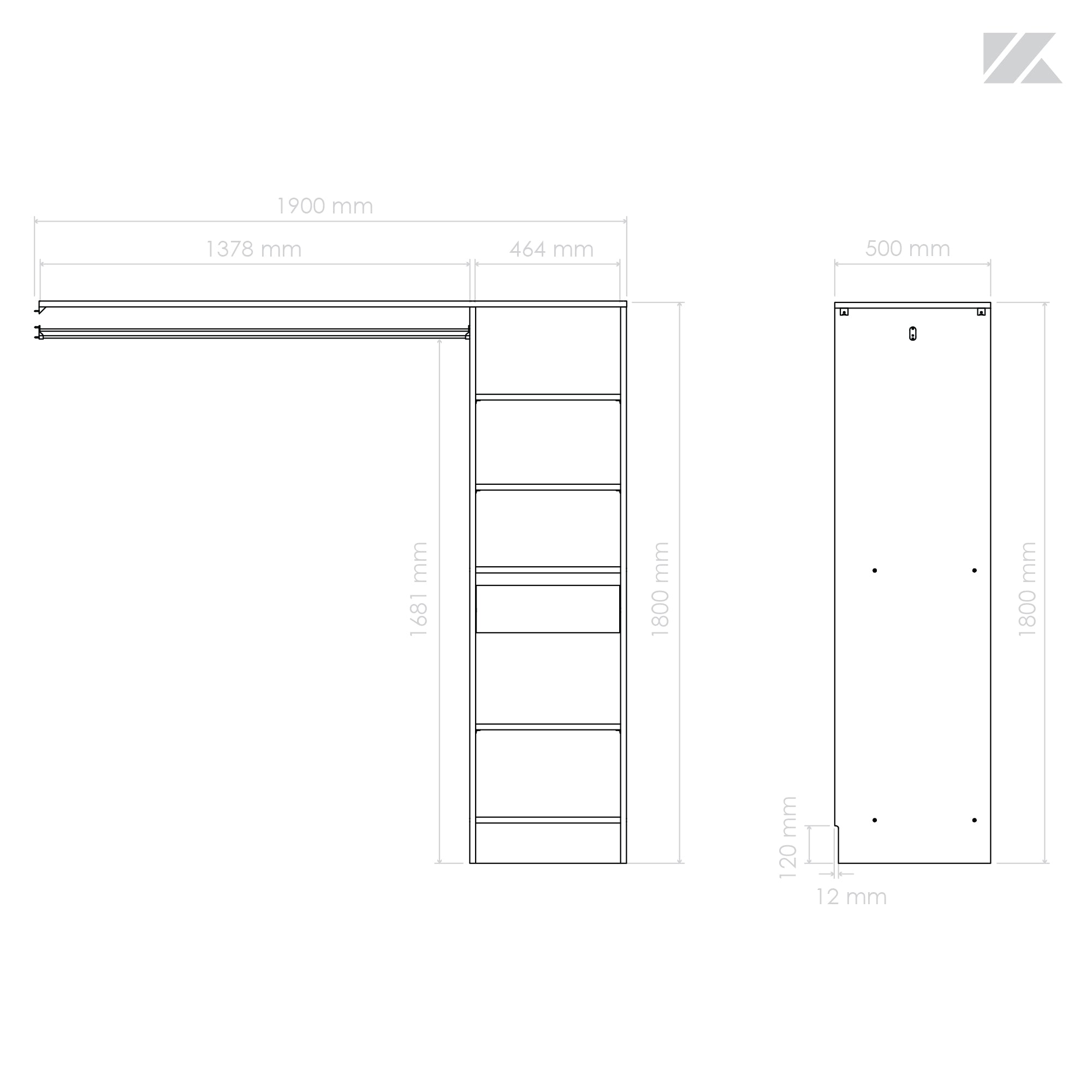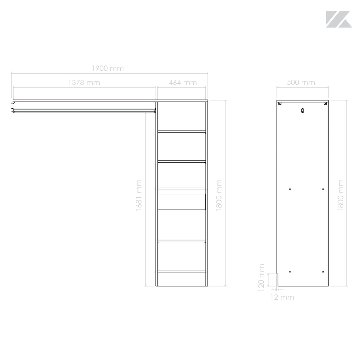 Dim. : H1800 mm x L1900 mm x P500 mm (planches recoupables)