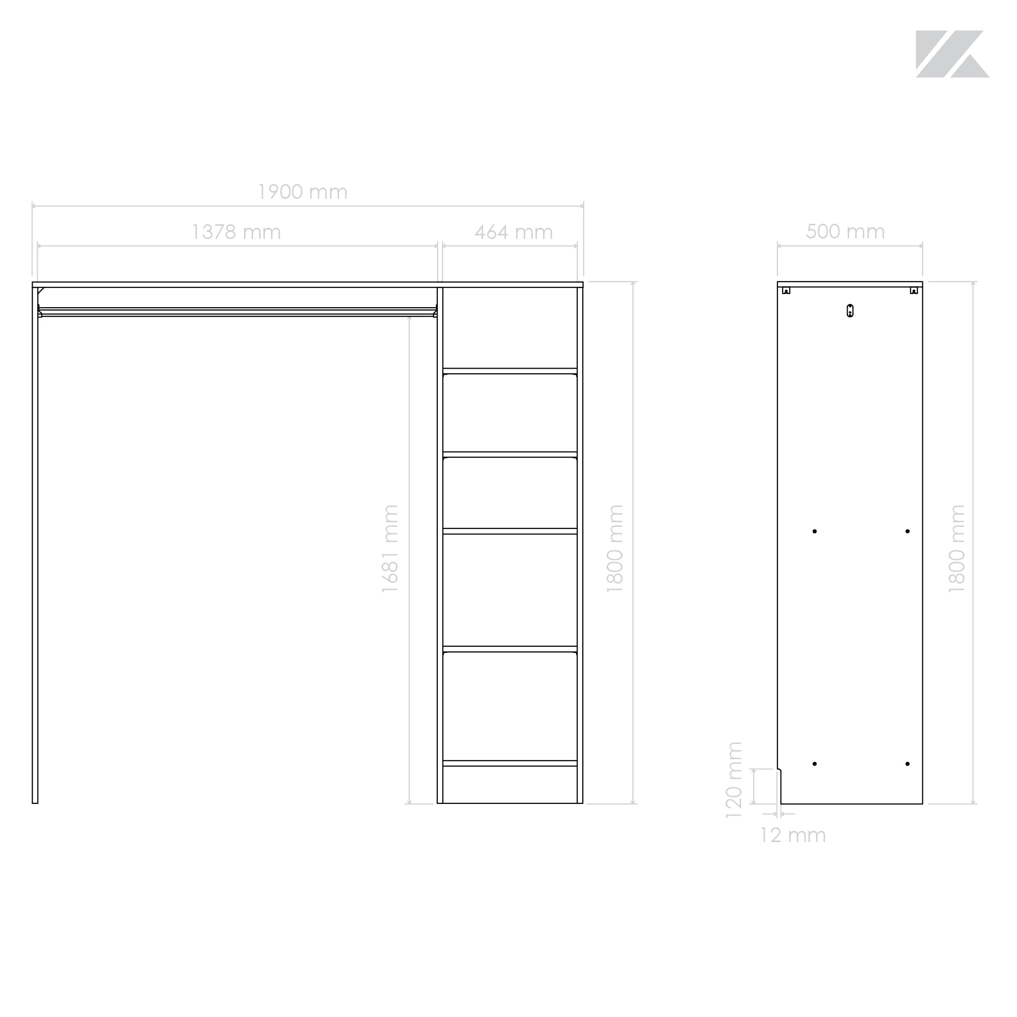 Dim. : H1800 mm x L1900 mm x P500 mm (planches recoupables)