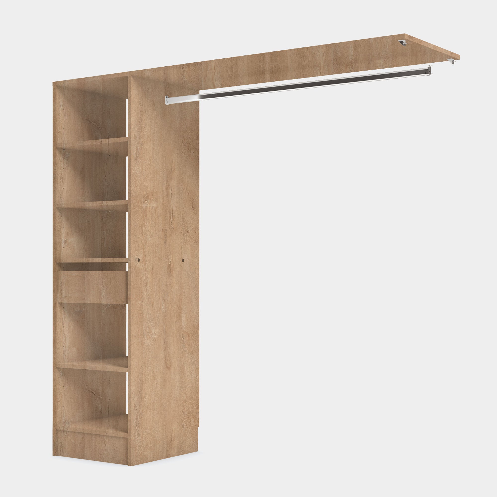 Ce dressing PRIMO est en mélaminé Chêne Blond. Ses 4 étagères, sa penderie et son tiroir sont adaptés aux petits espaces et vous permettront de ranger l'ensemble de vos affaires.