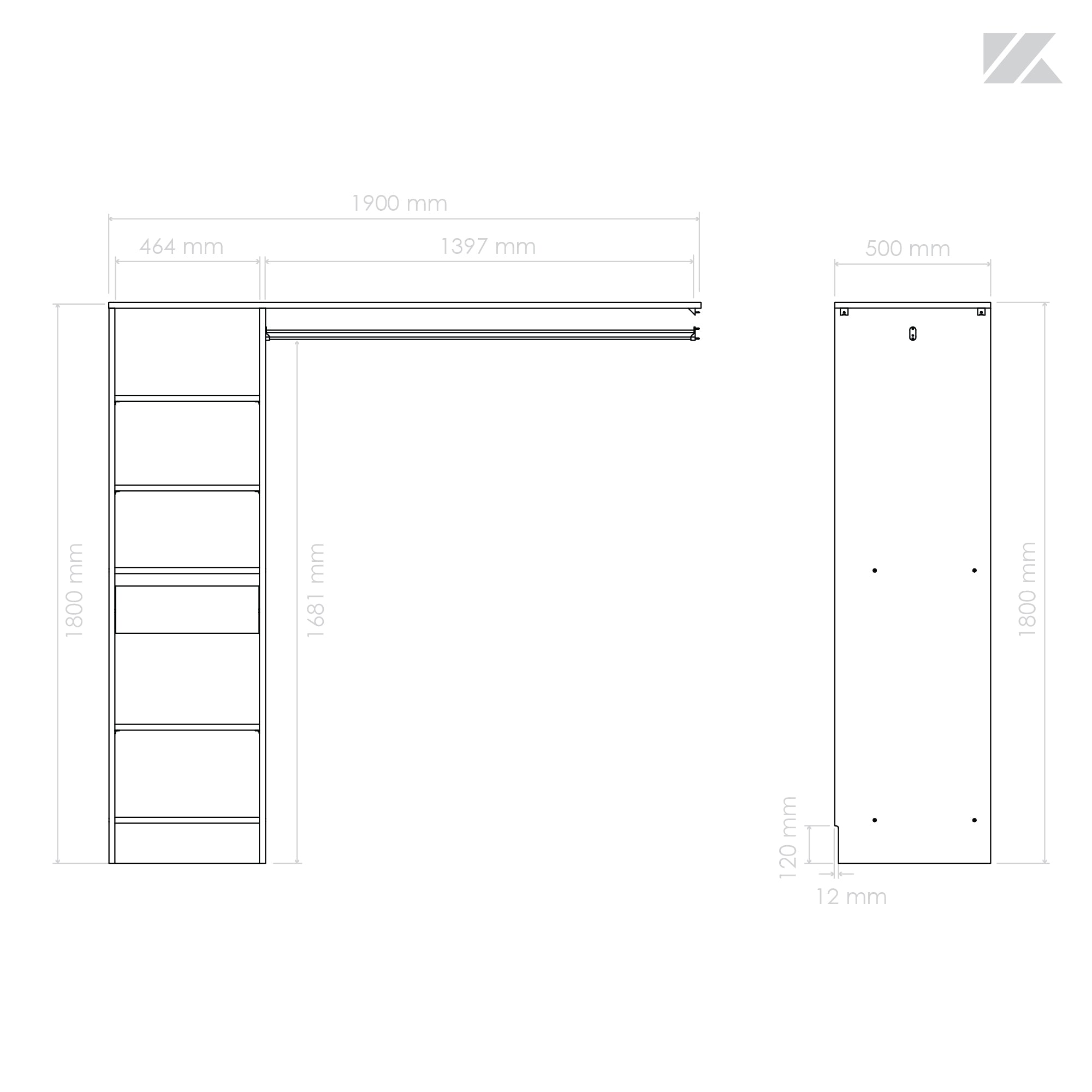 Dim. : H1800 mm x L1900 mm x P500 mm (planches recoupables)