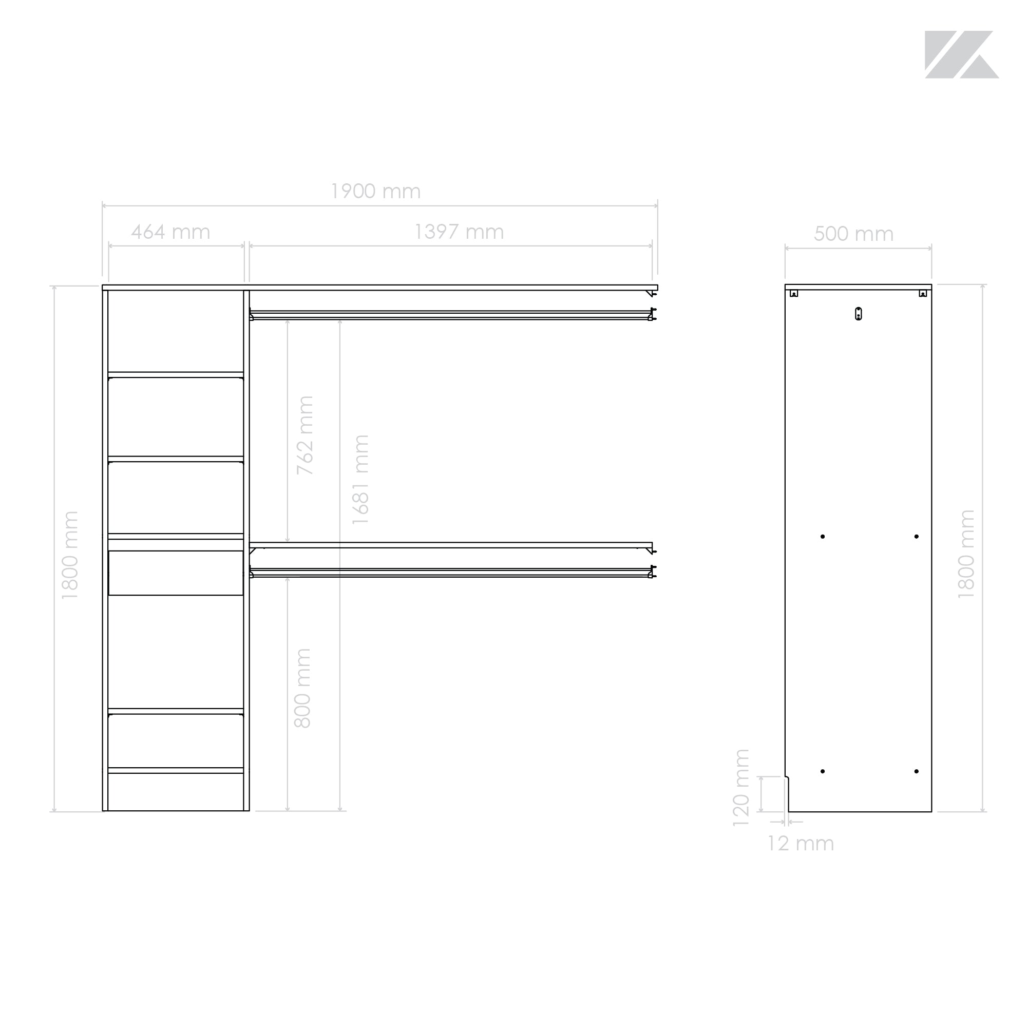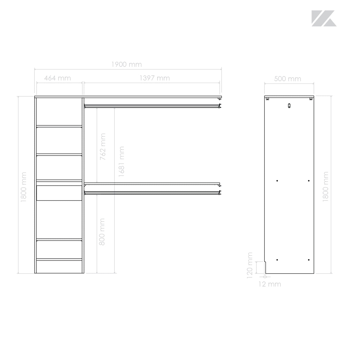 Dim. : H1800 mm x L1900 mm x P500 mm (planches recoupables)