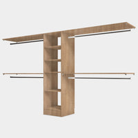 Ce dressing PRIMO est en mélaminé Chêne Blond. Ses 4 espaces de penderies et son caisson de 4 étagères en font un rangement idéal pour les grands espaces.