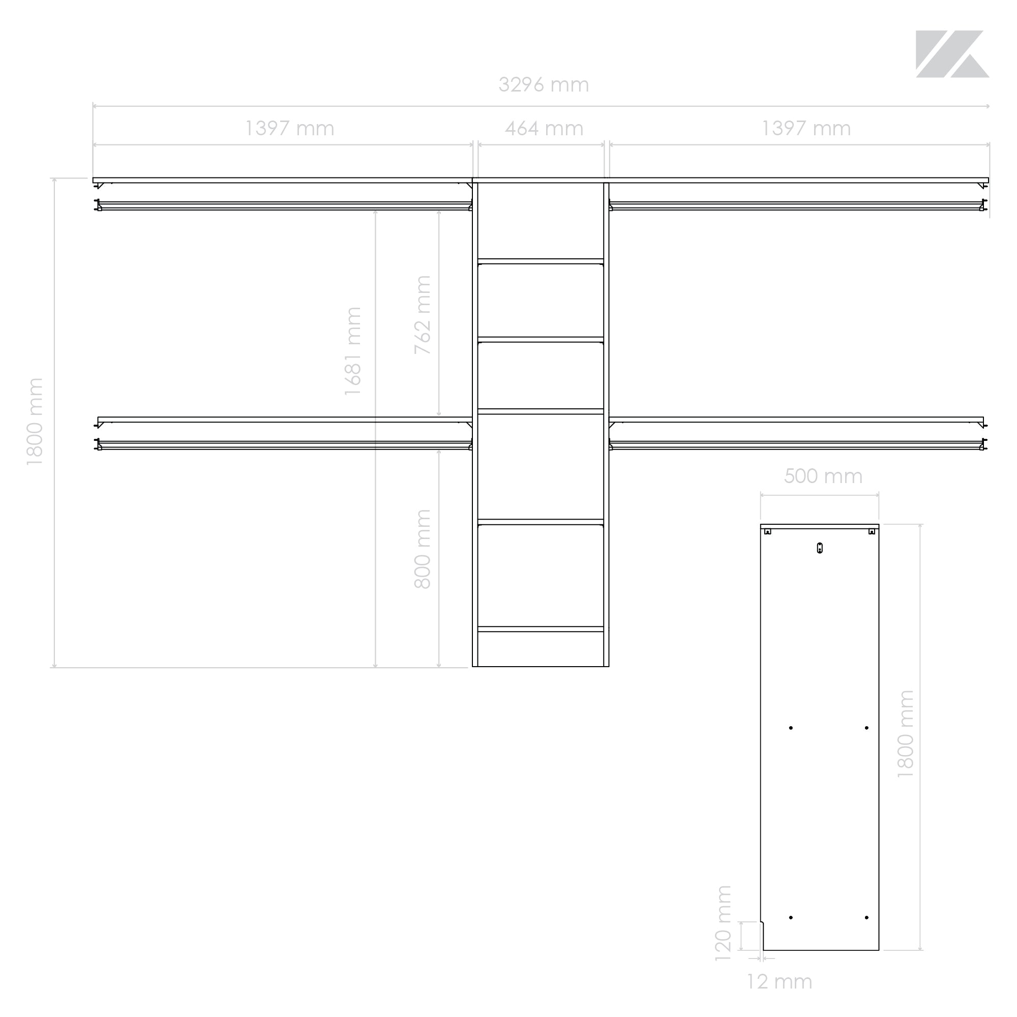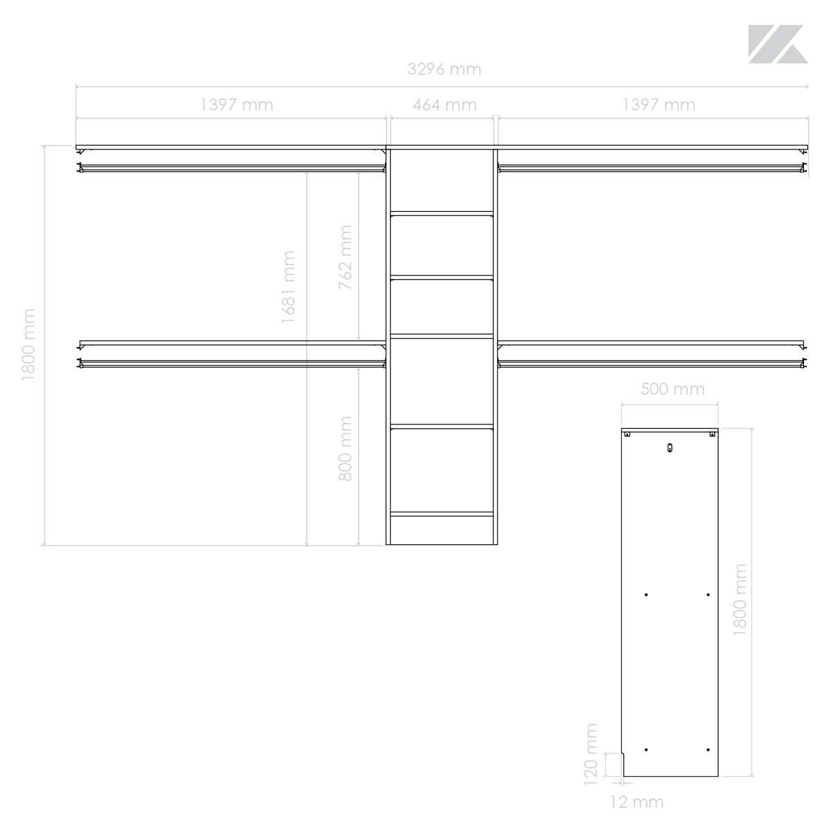 Dim. : H1800 mm x L3296 mm x P500 mm (planches recoupables)