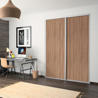 Adoptez ces portes de placard coulissantes effet merisier romana qui apporteront de la chaleur et de l'authenticité à votre intérieur. Les finitions et profils en acier laqué gris métal tranchent avec le décor afin de vous offrir un produit design et accueillant.