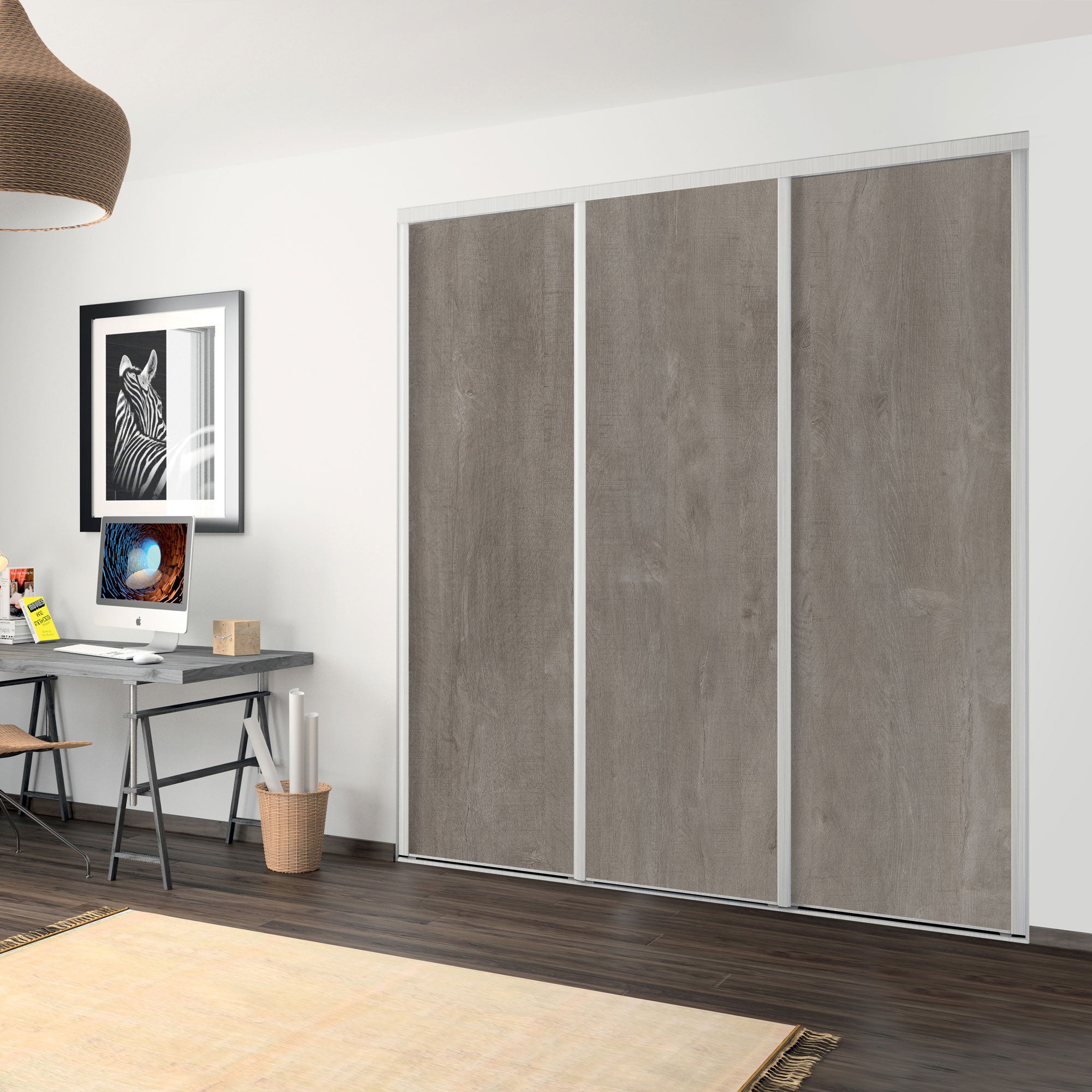 Adoptez ces portes de placard coulissantes effet chêne cigare brut qui apporteront de la chaleur et de l'authenticité à votre intérieur. Les finitions et profils en acier laqué gris métal tranchent avec le décor afin de vous offrir un produit design et accueillant.