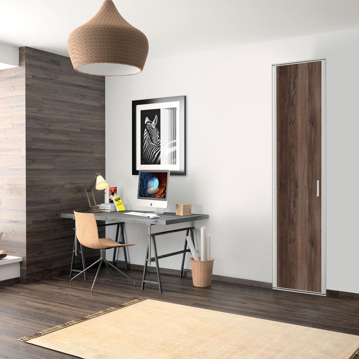 Adoptez ces portes de placard pivotantes effet noyer des andes qui apporteront de la chaleur et de l'authenticité à votre intérieur. Les finitions et profils en acier laqué gris métal tranchent avec le décor afin de vous offrir un produit design et accueillant.