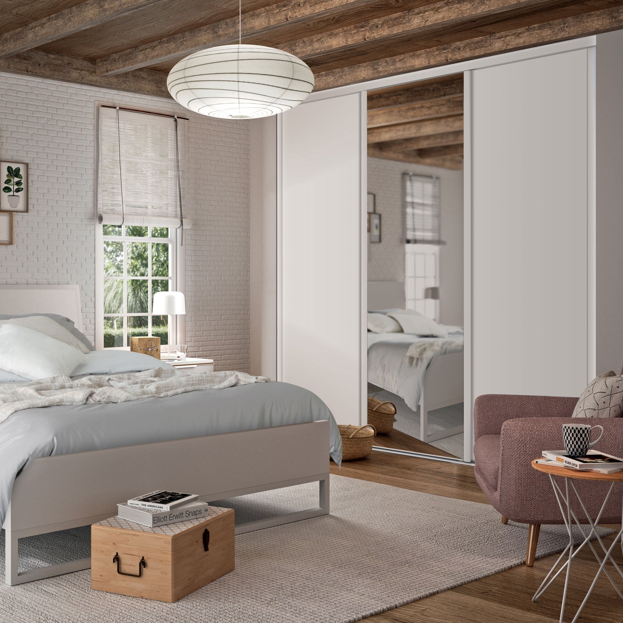Simple et fonctionnelle, cette façade de placard est composée de deux portes blanc mat et d'une porte supportant un miroir argent. Associée à une structure en acier,elle vous offrira une belle touche de luminosité et de sobriété.