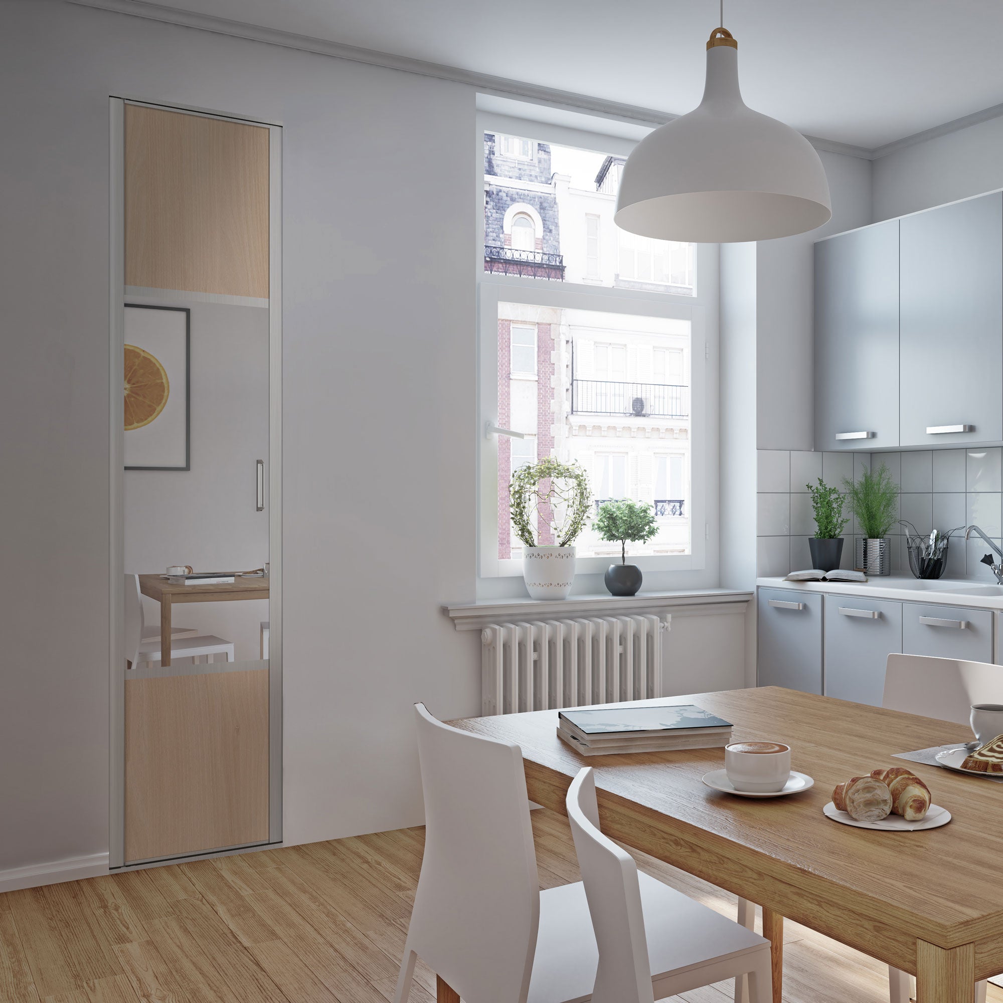 Misez sur un style original et intemporel avec cette façade mixant l'effet acacia clair et un miroir argent. La structure en acier gris métal se mariera parfaitement à cette composition pour vous apporter un ensemble fonctionnel et élégant.