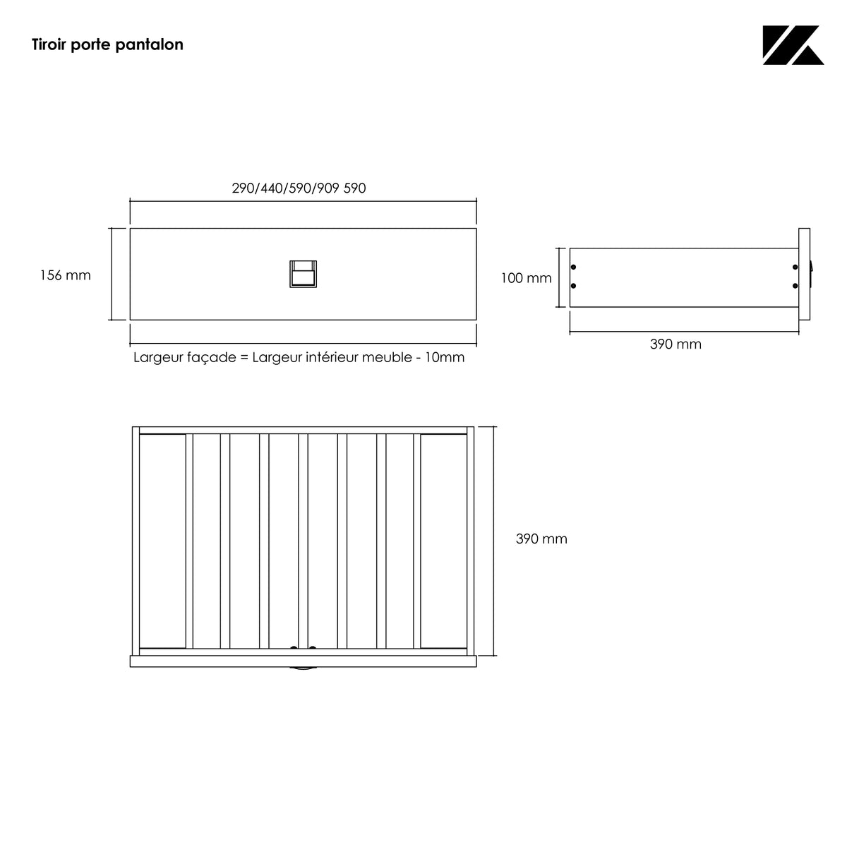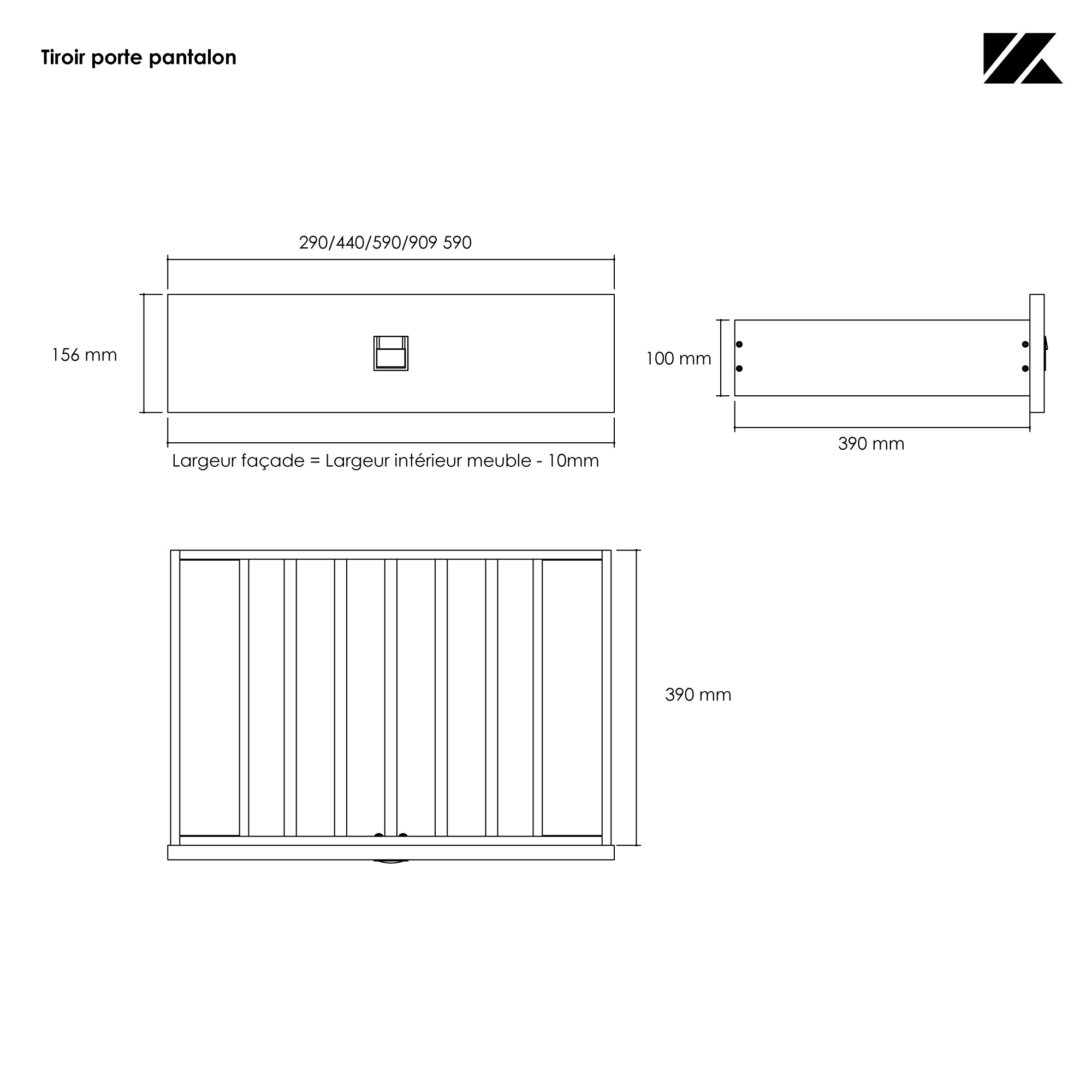 Hauteur de façade 156 mm, Hauteur intérieure disponible 80 mm.