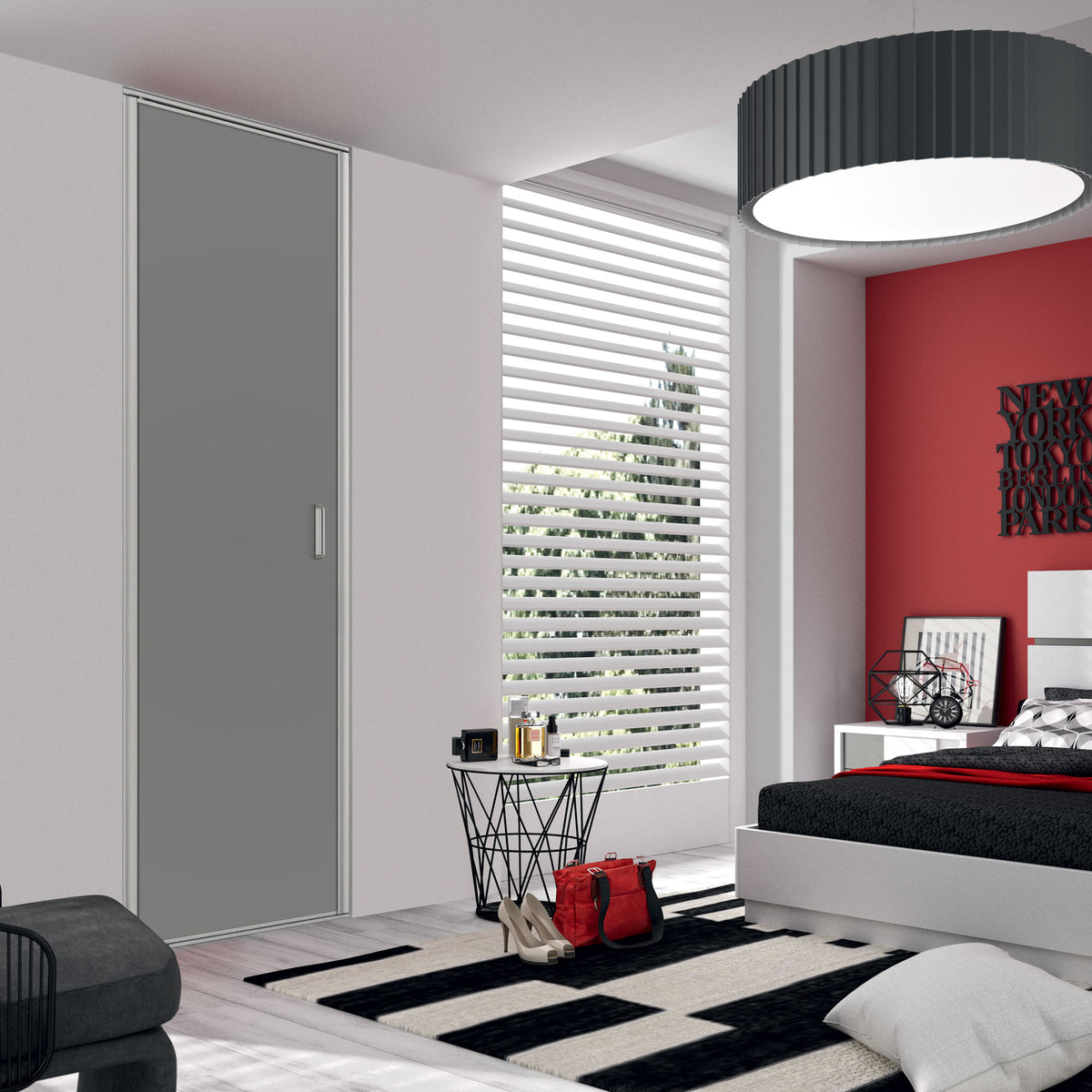 Puissance est le maître mot pour décrire cette porte gris intense. L'habillage quant à lui est conçu pour se fondre dans le décor afin d'obtenir un rendu design et élégant.