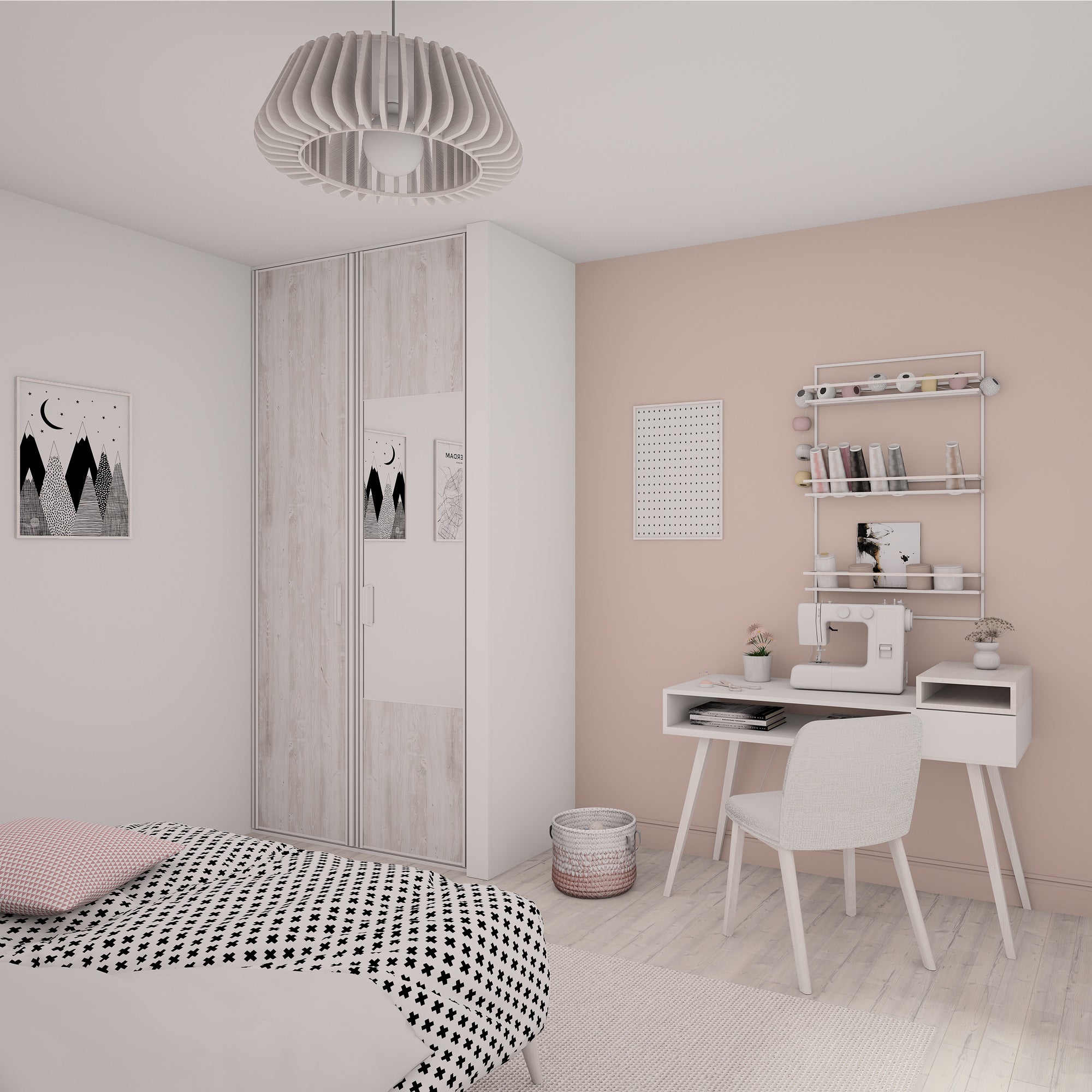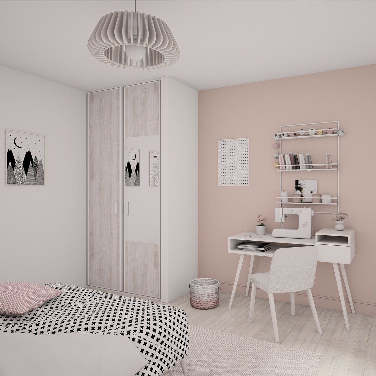 Vous allez adorer le jeu des matières sur cette façade 2 portes pivotantes Kazed. Elle mixe un miroir Argent, lumineux et brillant, valorisé par de fines traverses et d’élégants effets bois Pin blanc vieilli. Les finitions sont en aluminium Blanc mat pour un rendu moderne.