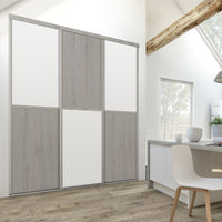 Optez pour une cuisine d'inspiration scandinave avec ces portes de placard effet frêne tabac et blanc mat. Sa composition en damier surprend pendant que ses profils en acier enrobé frêne tabac unifient l'ensemble.