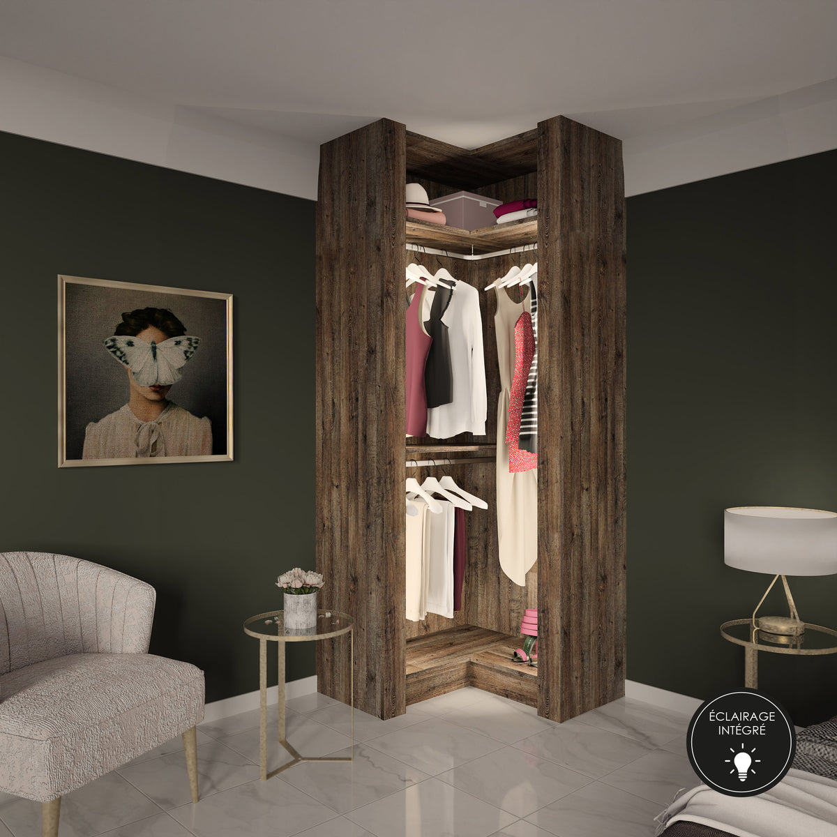 Soleo 1 espace d’angle adapté à une installation sans portes de placard Kazed.