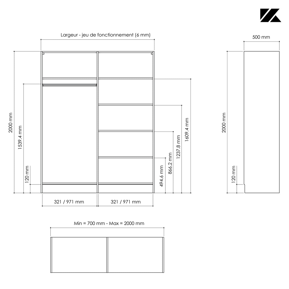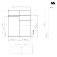 Fonctionnel et pratique, il se met à vos dimensions en largeur pour répondre à tous vos besoins. Sa hauteur est fixe. Grâce à sa profondeur fixe de 500 mm, il est idéal pour s´intégrer dans une niche. Cela lui permet aussi d'être parfaitement compatible avec toutes les façades de placard Kazed, quelque soit le système d'ouverture : pivotant, coulissant ou pliant.