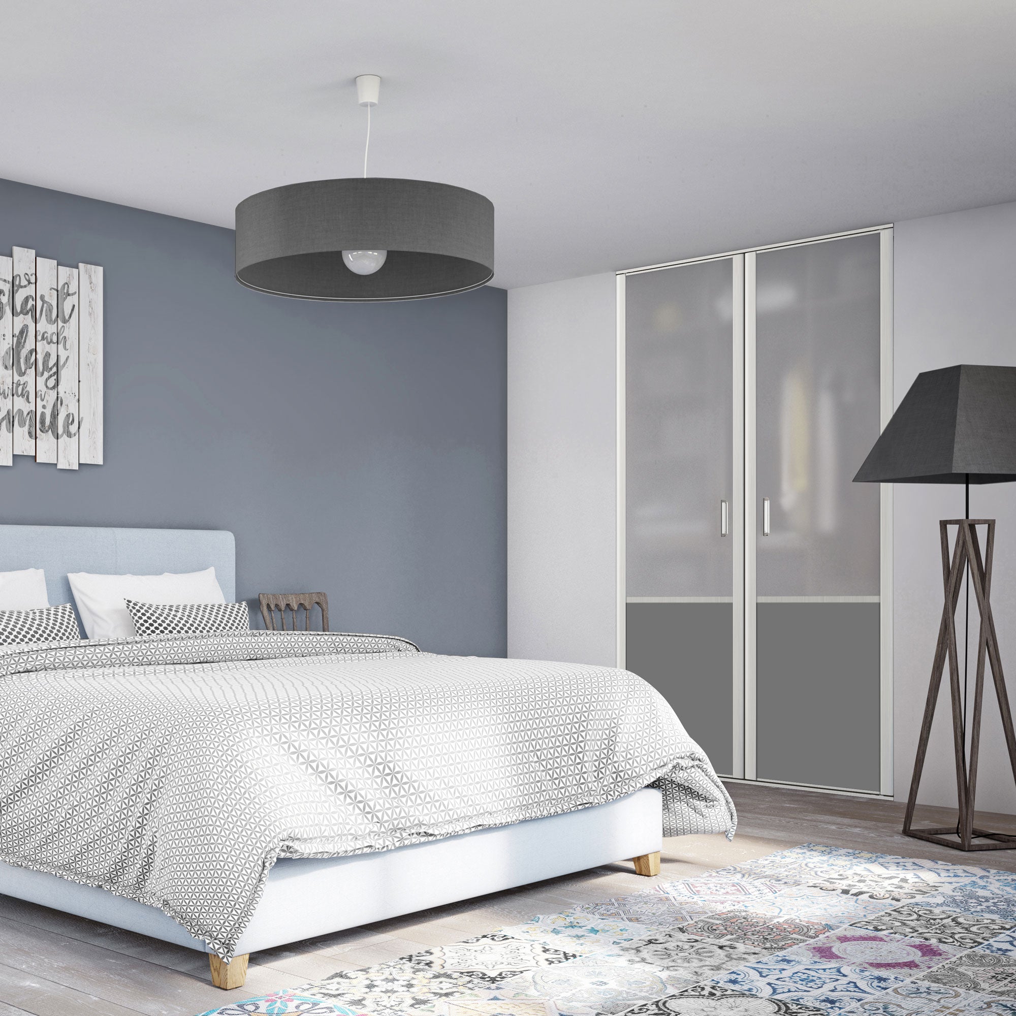 Ces portes de placard pivotantes garderont votre dressing privé grâce à leurs vitres dépolies. Elles vous plongeront dans une ambiance apaisante grâce à sa couleur gris intense. Montées sur une structure en aluminium, elles offrent un design haut de gamme.