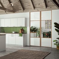 On aime cette Collection pour la sobriété du verre laqué Blanc pur et du miroir Argent et le caractère de la finition Merisier romana qui donne un style tropical et contemporain à ces portes de placard pivotantes qui illumineront votre pièce.