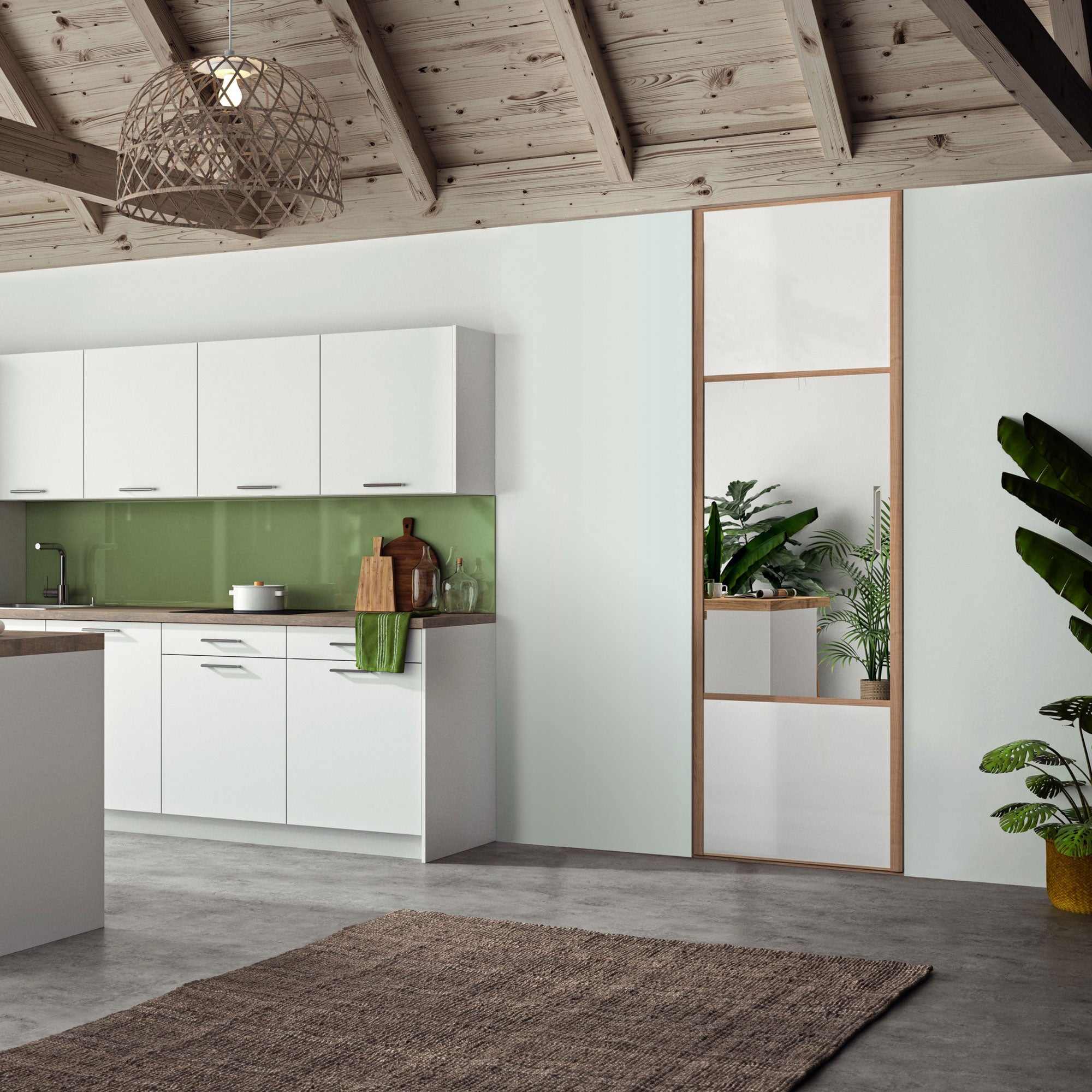 On aime cette Collection pour la sobriété du verre laqué Blanc pur et du miroir Argent et le caractère de la finition Merisier romana qui donne un style tropical et contemporain à cette porte de placard pivotante qui illuminera votre pièce.