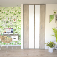 Dans un style exotique remarquable, les décors blanc mat et chêne cigare brut de cette façade de placard pliante n’ont pas fini de vous séduire. L’ensemble est sublimé par une finition en aluminium assorti.