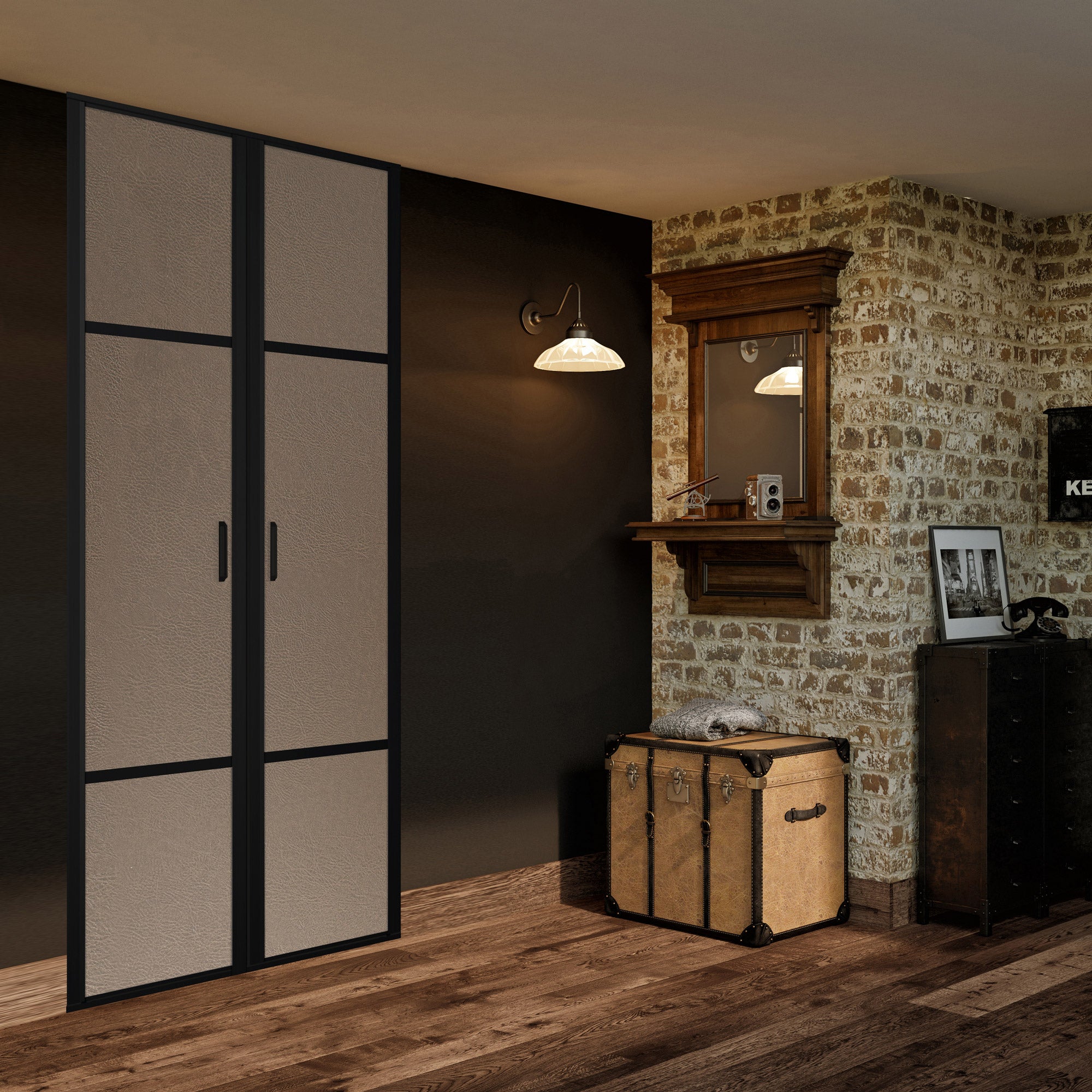Osez le total look cuir pour une déco vintage ultra chic ! L'effet cuir vintage beige de ces deux portes pivotantes masquera élégamment un placard. Les traverses sont assorties aux finitions en aluminium noir mat.