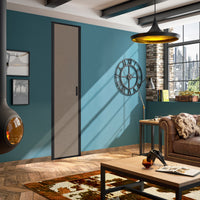 La douceur d'un effet cuir vintage brun apportera un cachet vintage à votre décoration. Cette porte de placard pivotante possèdent des finitions en aluminium noir mat.